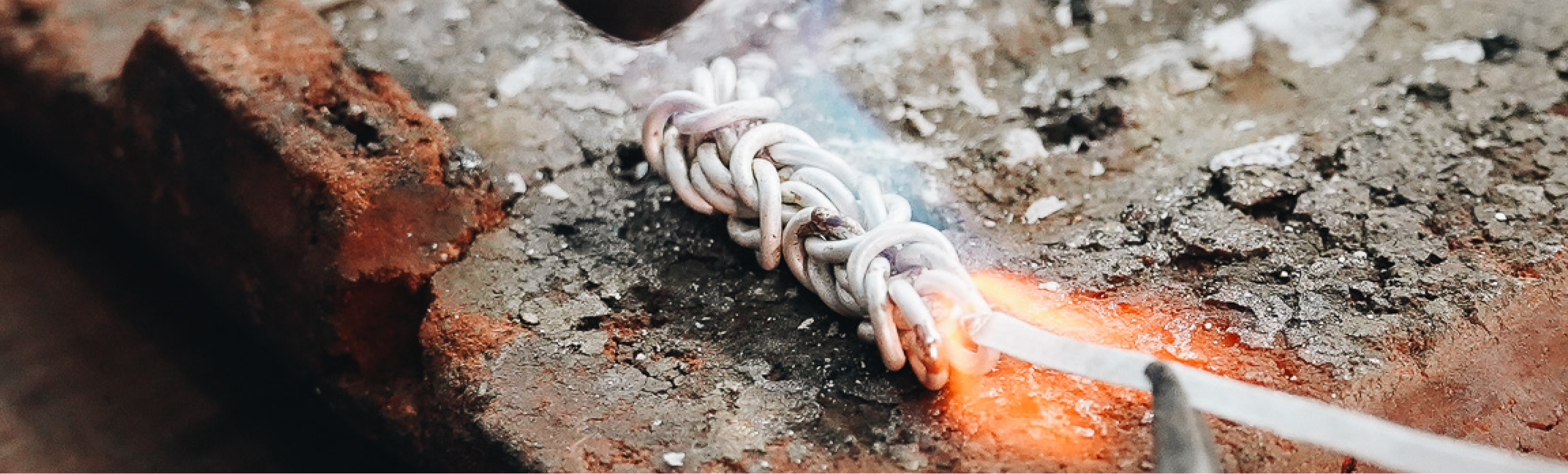 Every single connection point is flame-soldered shut. We don't use jump rings that can pull apart over time. Every link is permanently joined to create a unified structure with zero weak points.